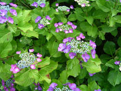 6月27日畑の片隅で あじさい が咲きました。梅雨 ならではの様子です。 休憩しましょう。6月14日の花は「桜島大根の花」です。