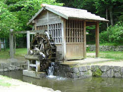 水車小屋や東屋など、昔の河内の暮らしがわかる「河内の里」も整備され
